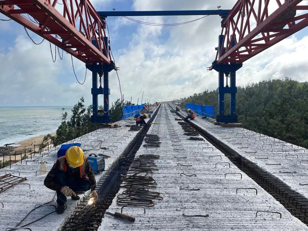 在港侯大桥项目现场,焊接火花闪耀,机械工作有序,工人们专心作业,各项工序严密联接,为最终一片箱梁的装置进行着最终的准备工作,跟着箱梁缓慢运达指定方位,平稳落位并精准装置好,大桥贯穿的要害节点顺畅完结。